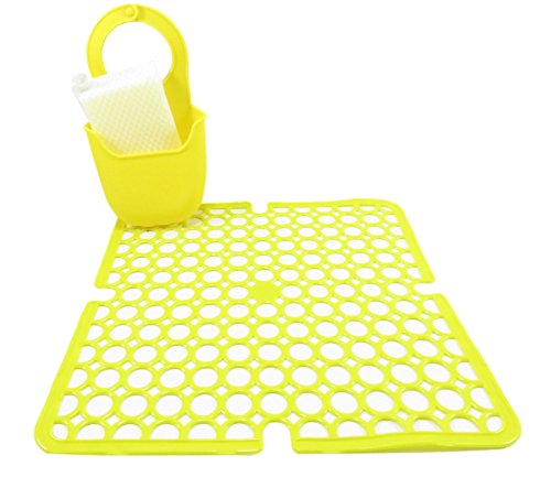 Cool Sink Protector Mat 10 7/8 x 10 7/8 and Sponge Scrubber Soap Holder Neon Yellow (2 Piece)