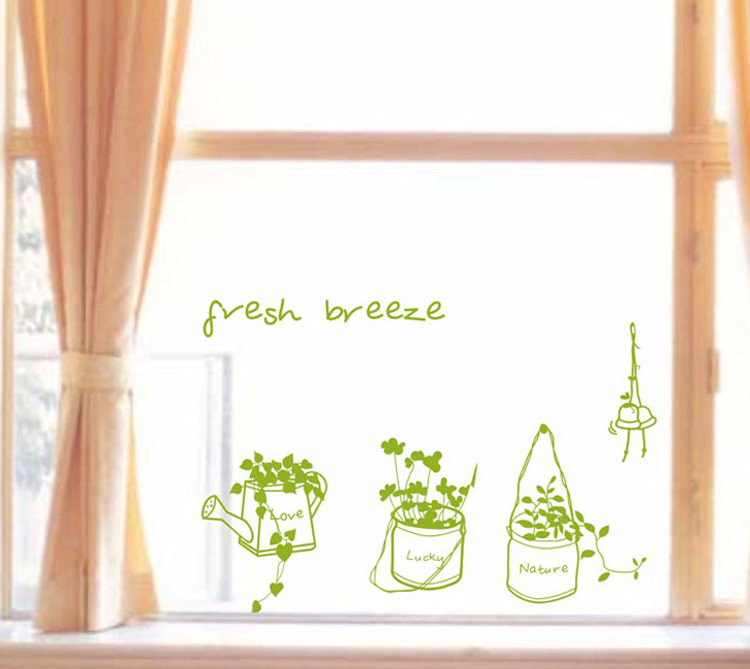 墙贴纸 绿色小盆栽 墙纸贴墙贴画贴花 窗子玻璃阳台 墙壁贴纸