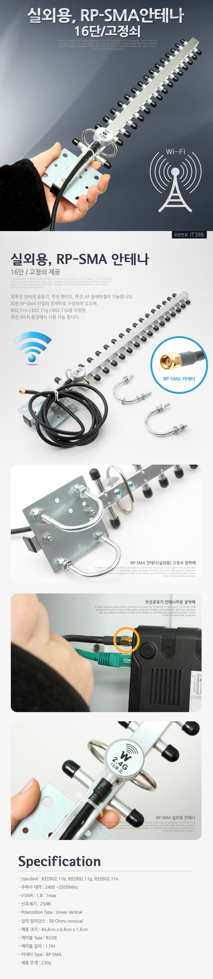 Indoor wireless antenna 16 RP-SMA AP router,