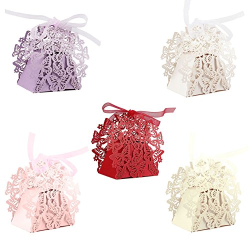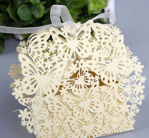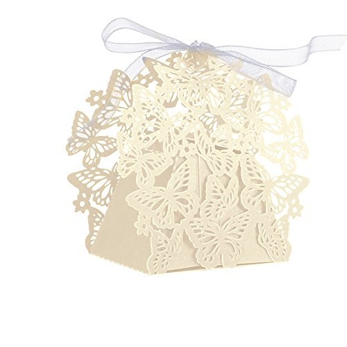 BUTTERFLY BOXES 2.5" x 2" holiday wedding candy gift jewelry decorative party favor (10, Ivory)