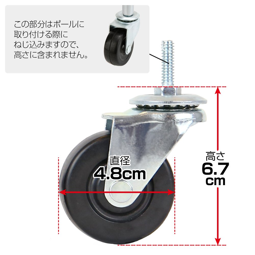 Luminous pole diameter 19mm parts for underbody parts caster stopper without rubber casters (two sets) at the pole mounting height 6.7cm CT-GN50