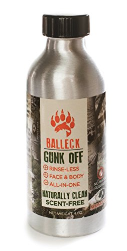 Balleck Mossy Oak Gunk Off: 3 in 1 Water-less + Rinse-less + Scent-free Hand Wash Body Wash and Face Paint Remover Scent Free 4 oz