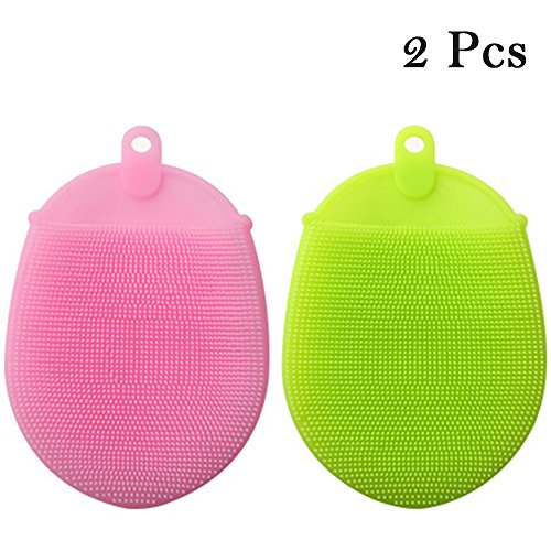 2 Pack Amhii Silicone Scrubbers Sponge for Cleaning and Bath -Antibacterial, Food-grade, Mildew-Free, Non Stick Dishwashing Cloth Brushes (Random Color)