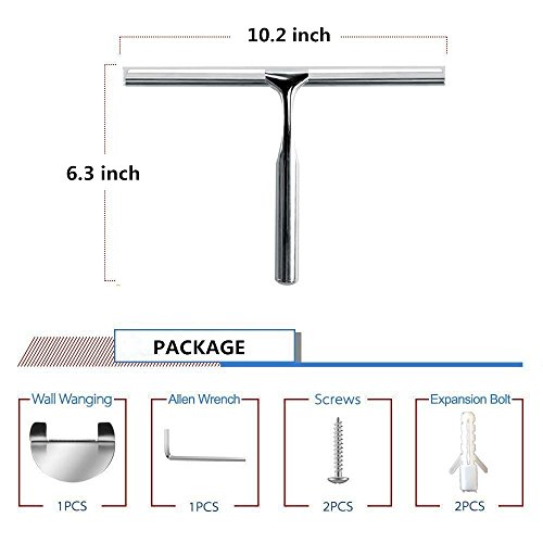 Shower Window Cleaning Squeegee, Deluxe Stainless Steel Squeegee for Bathroom Mirror Wiper,Window Glass Cleaning with Strong Storage Hook