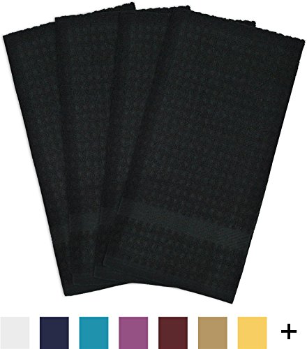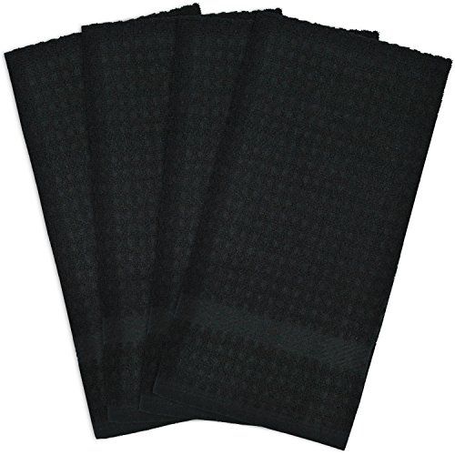 DII Cotton Waffle Terry Dish Towels, 15 x 26" Set of 4, Ultra Absorbent, Heavy Duty, Drying & Cleaning Kitchen Towels-Black
