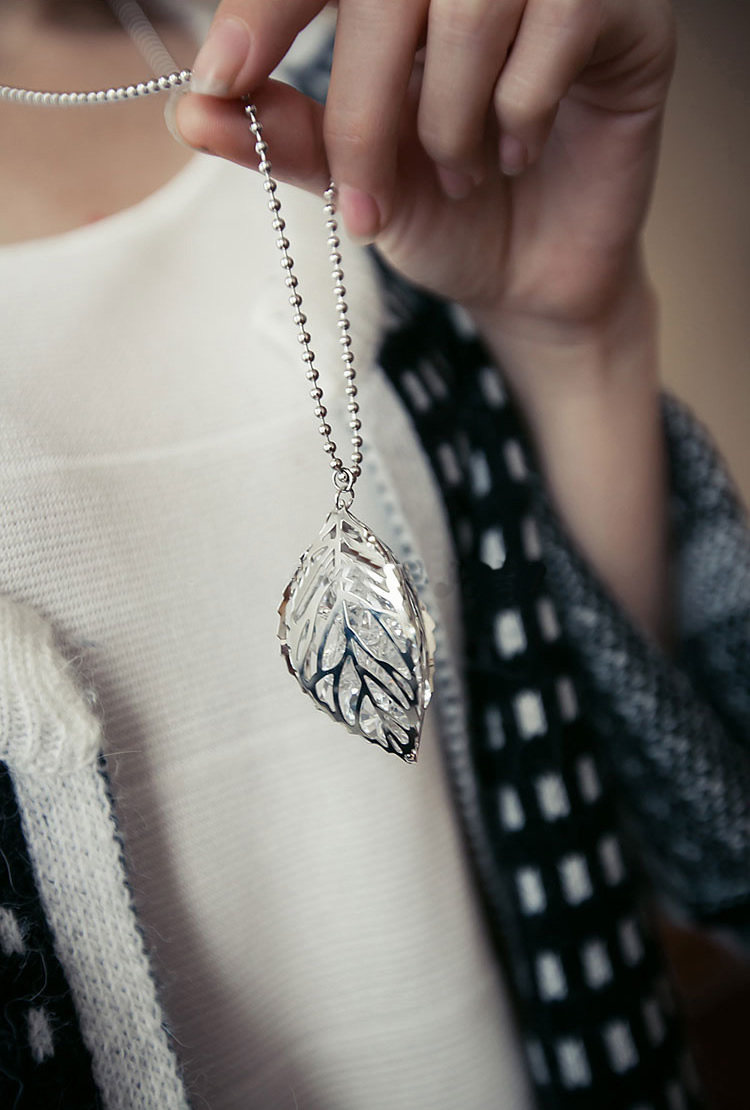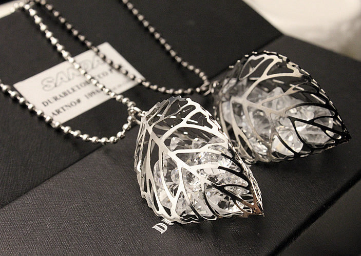 Alloys. Necklace length of 70 centimeters. Leaf size 5.2 * 3 cm