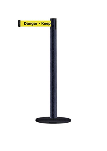 Tensabarrier 889U-89-89-STD-NO-YDX-C Black Wrinkle Post, 2" Wide, 7' 6" Length "Yellow Danger Keep Out" Belt, 90" Length, Steel