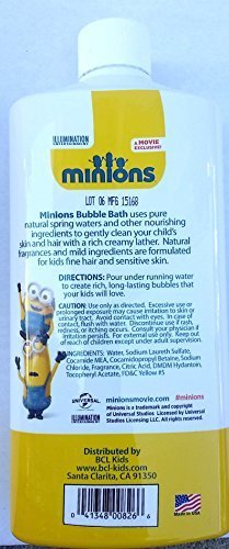 -. Feature : (1) Minions 16 Fl Oz Bubble Bath ( Banana Scented) / Made In The USA / Includes (1) Yellow Luffa / Vitamin E / Bundle of 2 Items