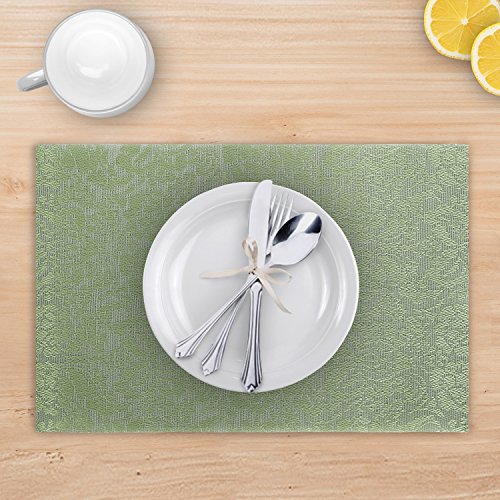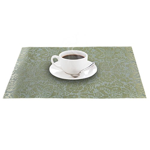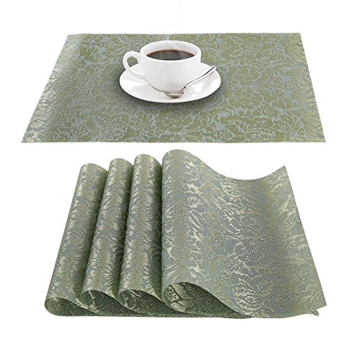 Deconovo Placemats Heat-resistant Place Mat Floral Resistant Anti-skid Washable PVC Table Mats Vinyl Placemats for Dining Table 12x18 Inch Green Set of 4