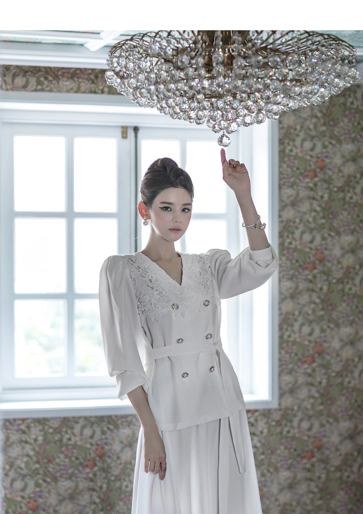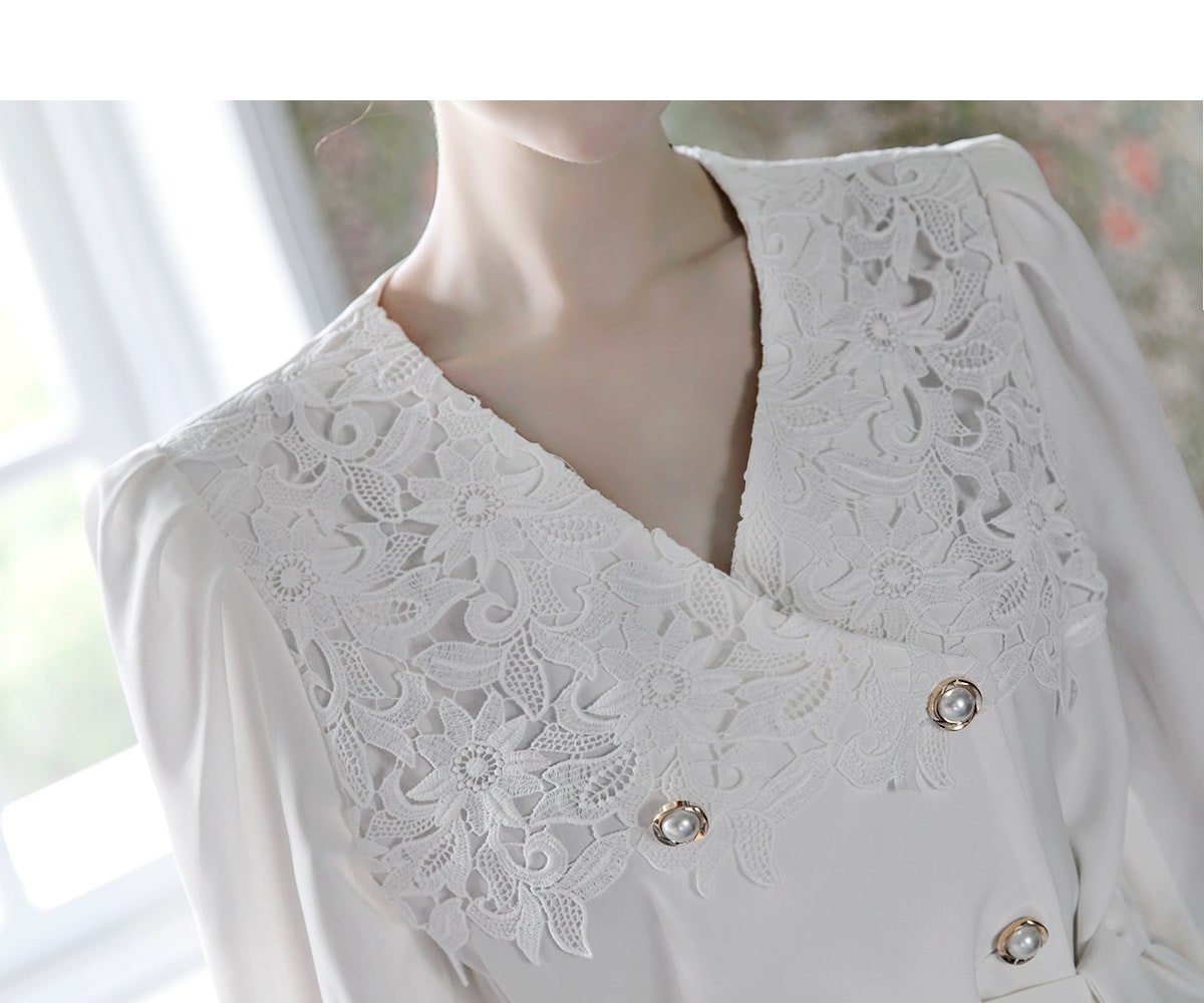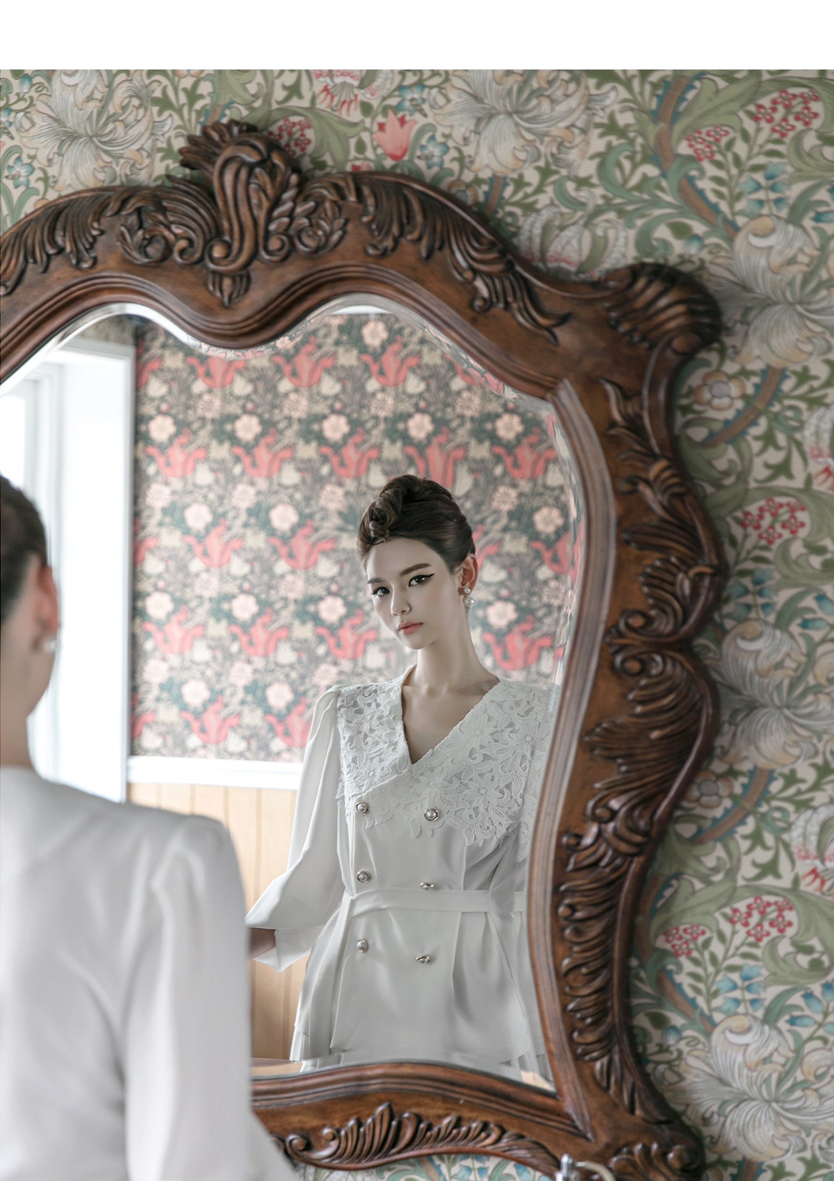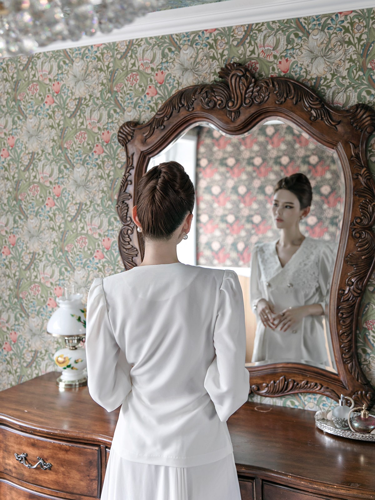 B2300 레이스 더블 펄 버튼 블라우스 Ivory