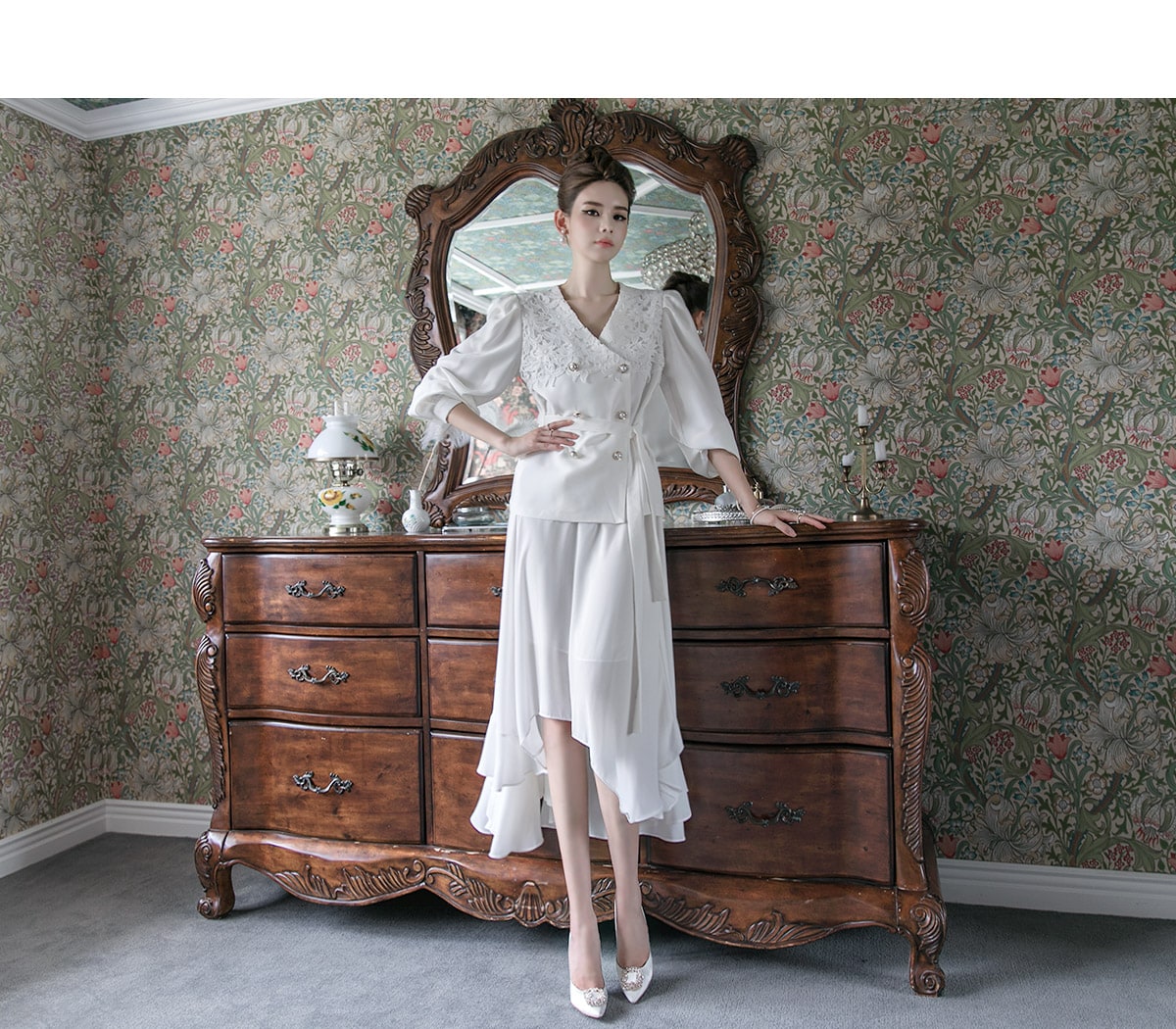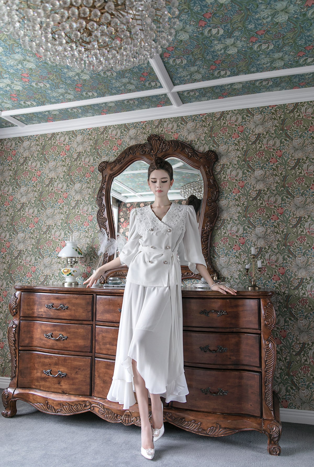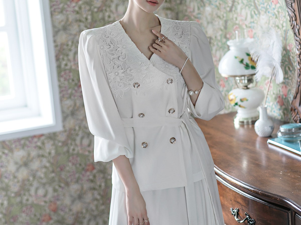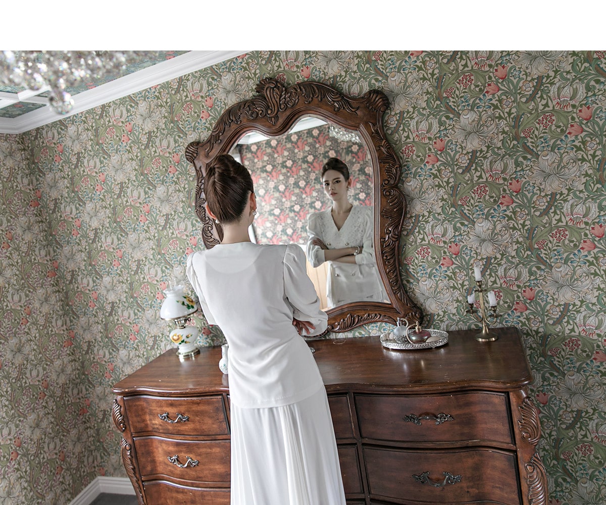 B2300 레이스 더블 펄 버튼 블라우스 Ivory