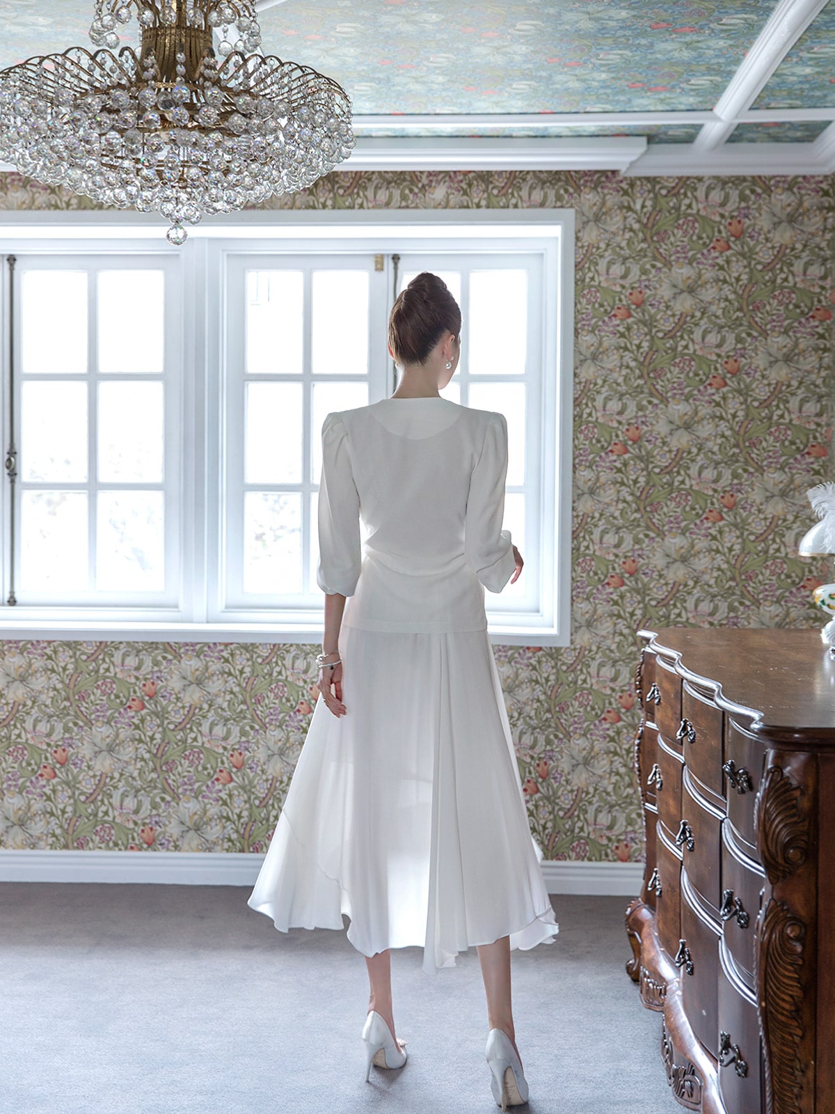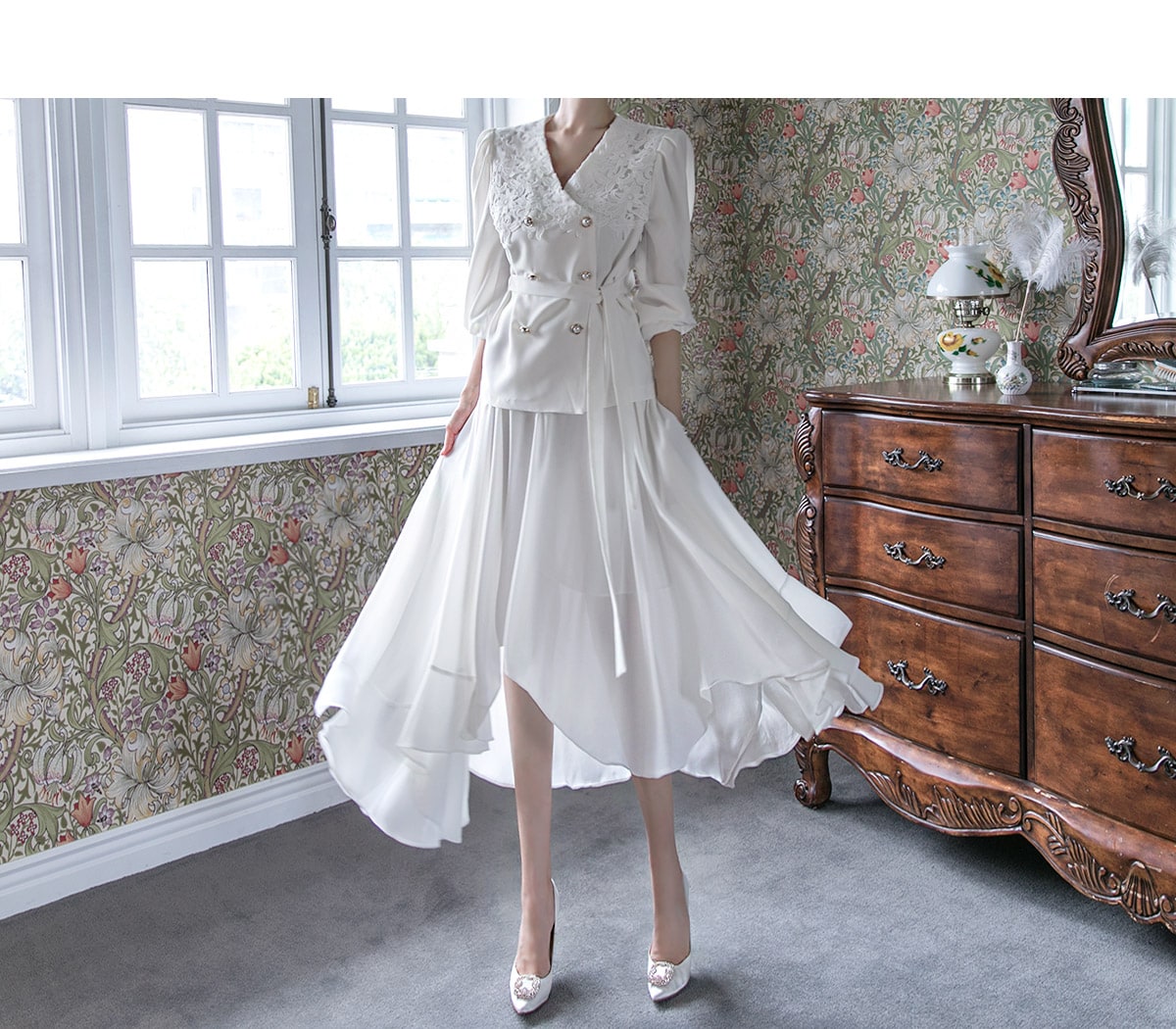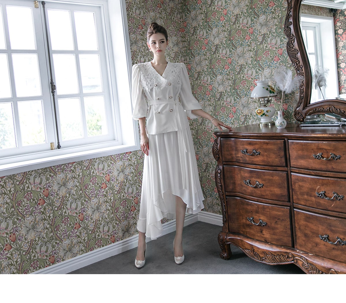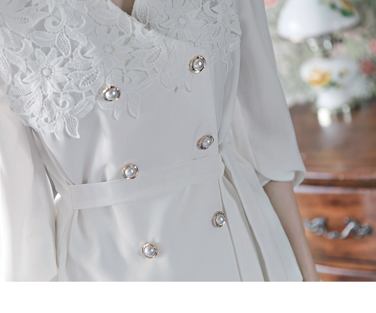 B2300 레이스 더블 펄 버튼 블라우스 Ivory