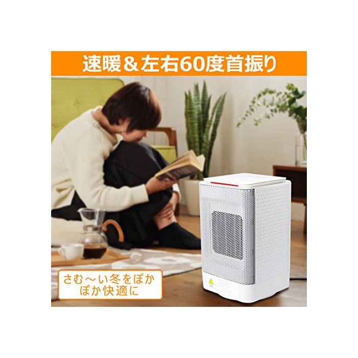 【빠르 난&수태도】전원 스위치를 ON에 누르고, 2초에 온풍이 나오고, 방이 따뜻하게 됩니다.따뜻해지기 까지의 시간이 짧고, 차갑 성의 여성이나 곧바로 덥게 해 대인에게 권장합니다.또한좌우45도수 흔들어 기능이 붙고 있습니다.본체를 이동 시킬 수 없어도 주위도 따뜻하게 됩니다.송풍 범위가 보다 넓어지는 위에,직사 열에 의한 피부의 건조나 목구멍의 아픔이 없습니다.