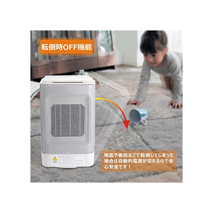 【안심 안전 기능】전도 시 자동OFF기능과 온도 스쳐 승방지 기능이 붙고 있습니다.본체에 진동이 전해진 시나 기울였 때도 전도 오프 스위치가 일하는 구조 입니다.본체가 스쳐 노보루에게 발열한 경우에 회로를 차단하고, 운동을 정지합니다.안전이 고려되어 있습니다. 아드님이나 애완동물이 있는 가정으로도 안심하고 이용 하실 수 있습니다.