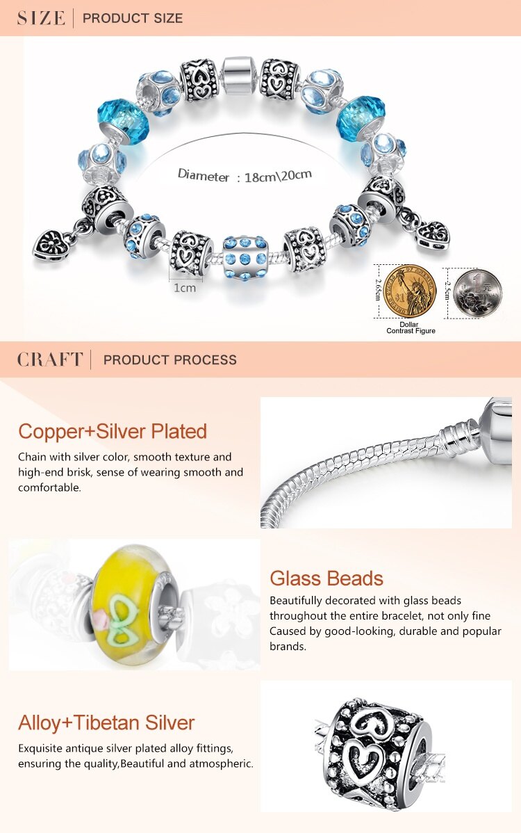 • Material: Silver Plated + Copper Alloy + Glass Beads