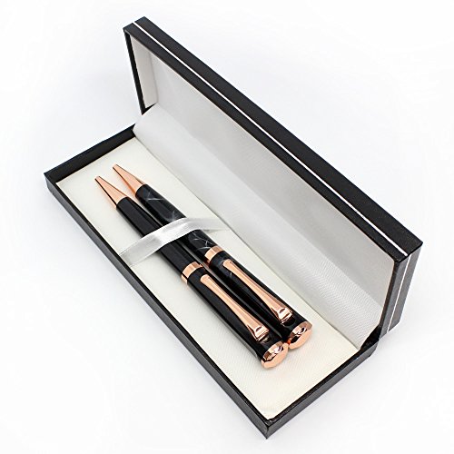 -. Binding : Office Product -. Brand : Creoly -. Color : Black -. EAN : 5060310403620 -. Feature : Two high quality retractable ballpoint pens in a gorgeous rose gold color. One has a black marbled effect, the other a subtle black shimmer. / The pens feature a well-balanced enameled metal body with comfortable grip and a smooth twist mechanism. / Perfect for the office or at home. Make a statement with your stationery. / Presented together in an elegant giftbox so you can show someone you care. / Contains black ink. Compatible with Schmidt P900 refills. -. Label : Creoly -. Manufacturer : Creoly -. MPN : HC-000117 -. PartNumber : HC-000117 -. ProductGroup : Office Product -. ProductTypeName : WRITING_INSTRUMENT -. Publisher : Creoly -. Size : Medium -. Studio : Creoly -. Title : Black Pen Set by Creoly | Two Luxury Writing Pens in a Gift Case | Ballpoint With Black Ink | Rose Gold and Black Marble