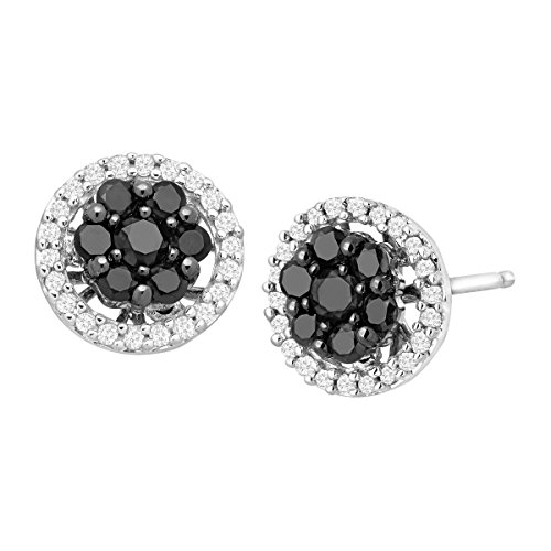 -. Feature : Halo Cluster Design / 1/2 ct Black & White Diamonds / 14K White Gold / Measure 5/16 by 5/16 Inches / Posts with Friction-Backs