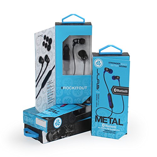 JLab Audio Metal Bluetooth Wireless Rugged Earbuds - Gunmetal - Titanium 8mm Drivers 6 Hour Battery Life Bluetooth 4.1 IP55 Sweat Proof Rating Extra Gel Tips and Cush Fins