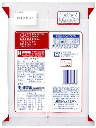 原材料:米(うるち米(米国産、国産)、もち米(タイ産))、植物油脂、でん粉、食塩、カツオエキスパウダー、粉末油脂、加工でん粉、調味料(アミノ酸等)、植物レシチン(大豆由来)