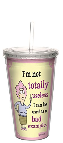 Tree-Free Greetings 16-Ounce Double-Walled Cool Cup with Reusable Straw, Aunty Acid Bad Example (CC98528)
