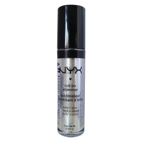 NYX - Roll on Eye Shimmer / Platinum-Ice White w Silver Glitter for Face, Eyes & Body Brighten your face and body with Roll on Shimmer. Add lustre to your look with our brilliant shades that roll easily onto eyes, face and body. You control the intensity of the pigment yourself. Easily blend the shimmer powder using a brush or fingers, the pop it into your purse for on-the-go sparkle.Feature