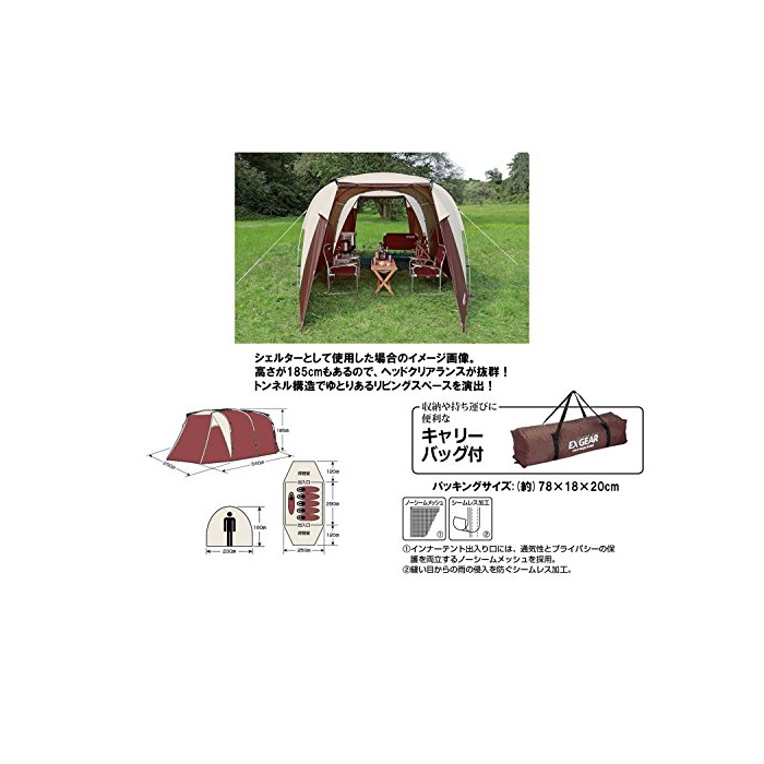 원본상품명: キャプテンスタッグ キャンプ テント エクスギア シェルタ ワンルム ドム [5-6人用]UA-17