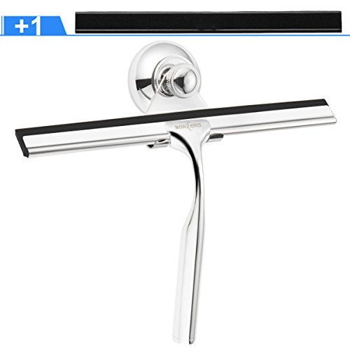 A Multi-function shower squeegee essential for every house! Whether you're cleaning a glass door, your windshield or the surface of a glass shower enclosure, our Stainless Steel Squeegee is all you need. ♥ Features: -Durable rustproof -Anti-slip handle -Simple easy to use -Easy to install and remove suction cup ♥ Excellent Performance: 1.Made of High-quality Stanless steel with SEBS blade, providing a long-lasting longevity. 2.Rust-proof materials makes it more durable in frequent use. 3.With the Ideal size and the hook on its handle, this product is easy to hang and store. 4.The precisely angled blade makes windows streak-free without any stains. 5.All-purpose stainless steel squeegee for wiping shower doors or walls,tiles and windows of any kinds. ♥ Product Specification: Materials:Zinc alloy and stainless steel with soft silicone scraper Color:tainless steel Product Size:L(9.6inch);W(6.7 inch);H(1.6inch) Weight:166g ♥ Package Include: 1×Shower Squeegee 1×Suction Cup Hook 2×replacement rubber blade ♥ Suction Cup hanging hook installation: Keep the Suction Cup surface dry and clean before use,press the center of Suction Cup downward. ☞NOTE:☜ 1.It's normal that if there is some noise during using,please wet the surface first. 2.The suction cup only affixes to nonporous,smooth surfaces such as glass shower doors and mirrors, and smooth glazed tile. 3.The window shower squeegee is well balanced so no need to put too much pressure when wiping, let its natural weight and balance do the work. 0