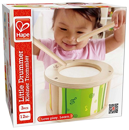 -. Binding : Toy -. Brand : Hape -. Color : Red -. EAN : 6943478002326 -. Feature : Your child will spend hours delighted by the music they make at their fingertips. / This durable little drum provides hours of fun while developing rhythm skills and an interest in percussion / Promotes dexterity, hand-eye coordination, musical skills, and creativity / Recommended for ages 36 months and up / Non-toxic finishes and child safe materials -. IsAdultProduct : 0 -. ItemPartNumber : HAP-E0303 -. Label : Hape -. Manufacturer : Hape -. Model : E0303 -. MPN : E0303 -. PackageQuantity : 1 -. PartNumber : E0303 -. ProductGroup : Toy -. ProductTypeName : TOYS_AND_GAMES -. Publisher : Hape -. ReleaseDate : 2013-07-28 -. Studio : Hape -. Title : Hape - Early Melodies - Little Drummer Wooden Music Set -. UPC : 885265720210 -. Warranty : Warranted Against Manufacturers Defects