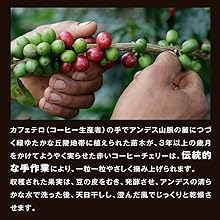カフェテロ(コーヒー生産者)の手でアンデス山脈の麓につづく緑ゆたかな丘陵地帯に植えられた苗木が、3年以上の歳月をかけてようやく実らせた赤いコーヒーチェリーは、伝統的な手作業により、一粒一粒やさしく積み上げられます。
