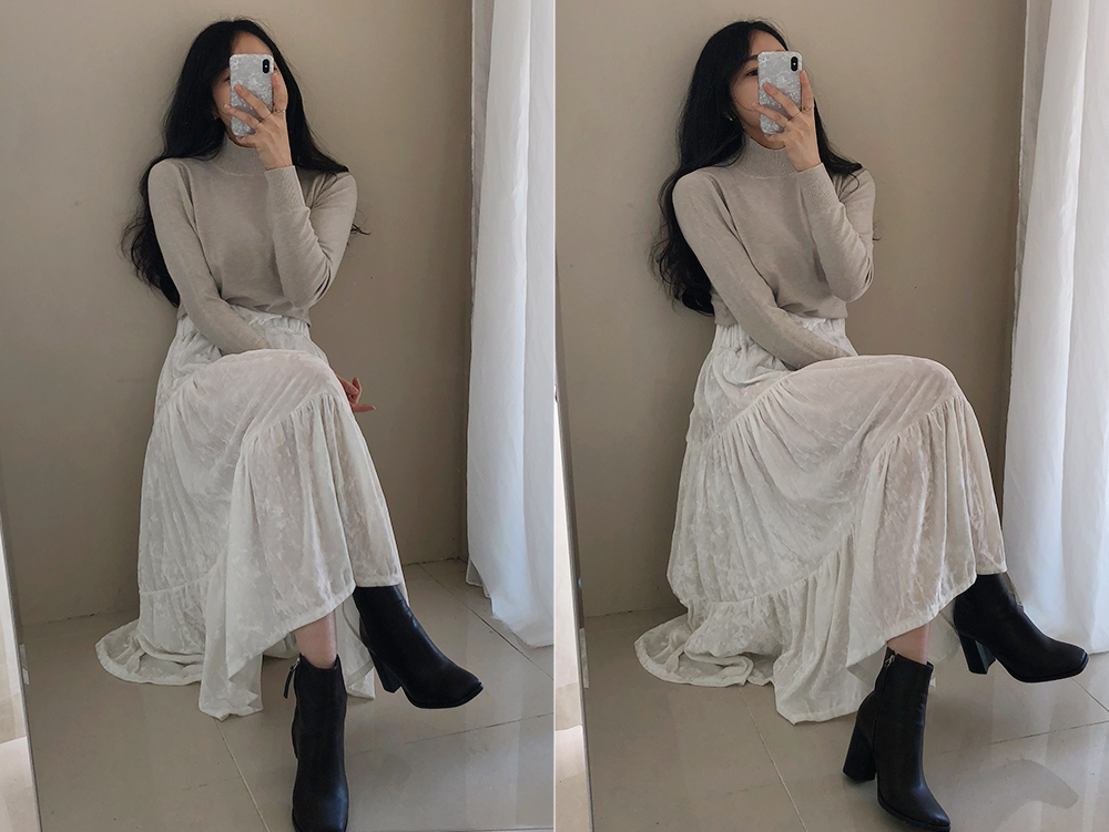반목으로 올라오는 네크라인으로 따뜻하게 감싸준답니다.