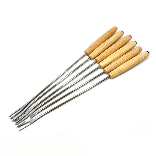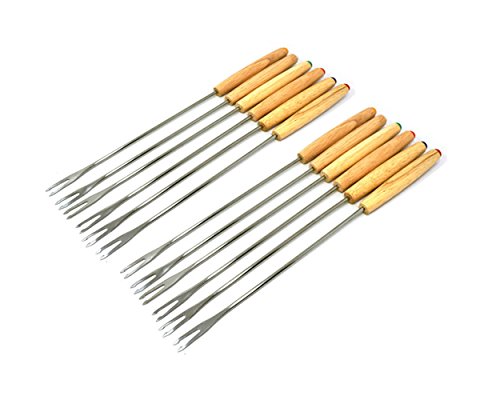 Antrader Stainless Steel Cheese Fondue Forks with Heat Resistant Oak Wood Handle for Chocolate Fountain, Melted Cheese and Roast Meat Set of 12