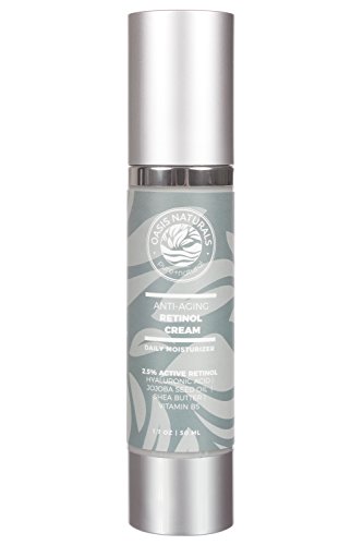 Oasis Naturals is proud to offer you our premium Anti-Aging Retinol Cream serum with hyaluronic acid, shea butter, and jojoba seed oil.RETINOLA vital component to the production of collagen and new skin cells, Retinol helps to build firm, full-bodied skin that glows. Use the Oasis Naturals Retinol Cream every day, and give your skin the resources it needs to repair itself and return to a more youthful state.HYALURONIC ACIDHyaluronic acid is a chemical in your skin that continually decreases as you age. With daily replenishing through use of our Retinol Cream, skin regains its child-like freshness. Fade fine lines and wrinkles with this soothing formula, created to plump and nourish aging skin.SHEA BUTTERFor a soothing, hydrating finish the Oasis Naturals Retinol Cream includes shea butter, the wonder-ingredient for smooth and supple skin. Quench your skin and eliminate dryness while you restore that youthful glow you've been missing.VITAMIN B5We include Vitamin B5 in our Retinol Cream formula in order to help restore the skins elasticity and increase moisture retention. B5 also protects the skin from future irritation and encourages the growth of new, more elastic skin cells to help slow the aging process and preserve youthfulness.INGREDIENTSWater, Glyceryl Stearate SE, Cetyl Alcohol, Retinol, hyaluronic acid, Stearic Acid, Glycerin, Simmondsia Chinensis (Jojoba) Seed Oil, Shea Butter, Vitamin B5, Tocopherol Acetate, Propolis Extract, Centella Asiatica Extract, Equisetum Arvense Extract, Taraxacum Officinale Extract, Geranium Maculatum Extract, Camelia Sinensis Extract, Xanthan Gum, Phenoxyethanol, Ethylhexylglycerin, White Tea Extract- Oasis Naturals Retinol Cream - With Hyaluronic Acid, Shea Butter & Vitamin B5 - 1.7 Ounce Glass Bottle with precision dropper - Paraben and Sulfate Free - Customer Satisfaction GuaranteedFeature