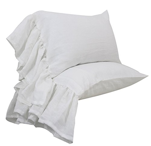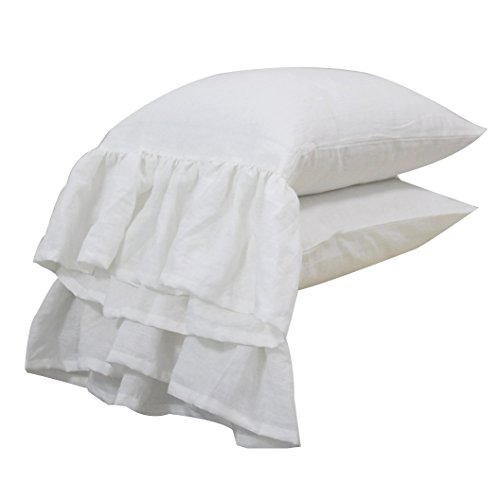 Queen's House Linen Pillowcases King Size White Shams Pillow Covers Set of 2-White