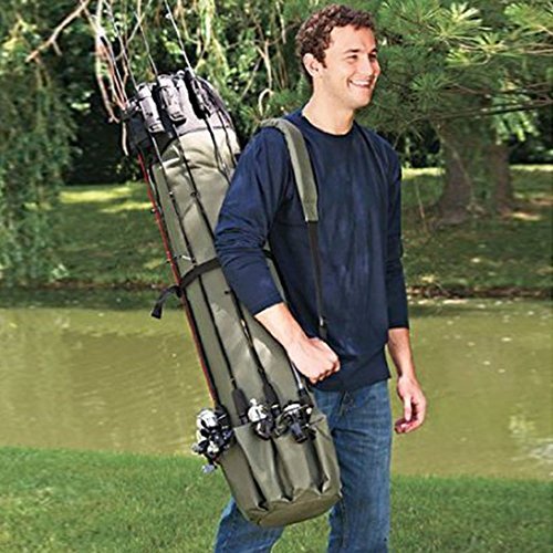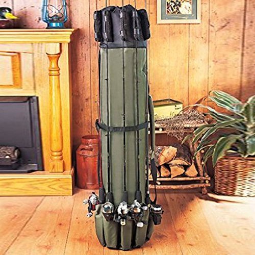 -. Feature : Dimensions: approx. 48.4"L x 13.4"D, 600D Oxford fabric material, sturdy and durable. / The carry case holds 5 rods and reels on the outside, plus more rods, reels, tackle and equipment on the inside. / Heavy duty grade high-tech polyester, adjustable shoulder strap, convenient and practical. / Large exterior pocket with fastener for essentials plus a padded adjustable shoulder strap and carrying handle. / This bag is a absolute must have bag for the person who loves to fish, there is enough storage for everything you need for a fishing trip.