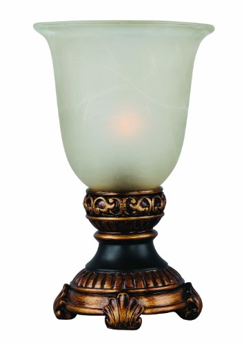 Park Madison Lighting PMA-1032 10-Inch Tall Glass Urn Accent Lamp with Amber Frosted Glass Shade, Antiques Gold and Bronze Finish