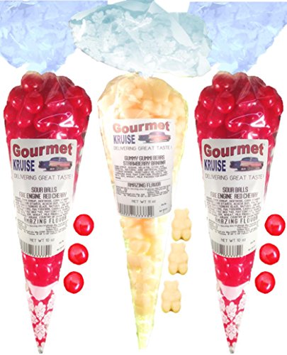 -. Title : Sour Balls (2) Fire Engine Red Cherry (1) White Strawberry Banana Gummi Gummy Bears (NET WT 31 OZ) Gourmet Kruise Signature Gift Bags