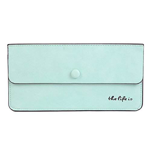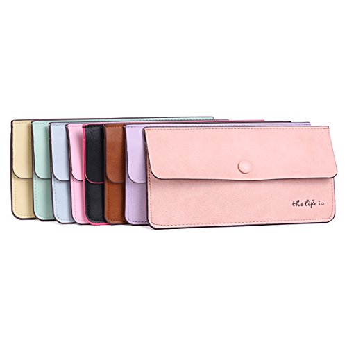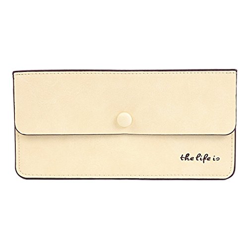 Product Description This basic wallet is made of suede. Fastened with concealed snap. The right cornor is adorned with letter print. This purse is extremely simple and thin. Inside is 1 main layer for you to save cash, ticket or notes, 4 card slots to hold your credit card. Measurement approximately: bag length 19.7cm (7.8 inches); width 10cm (3.9 inches); height 0.3cm (0.1 inch). 0