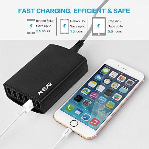 The unit has 6 USB charging ports that can charge 6 phones or tablet computers at the same time with a power output of 60 W. Provide the possible fastest charge up to 2.4 amps per port or 12 amps overall