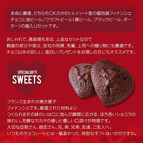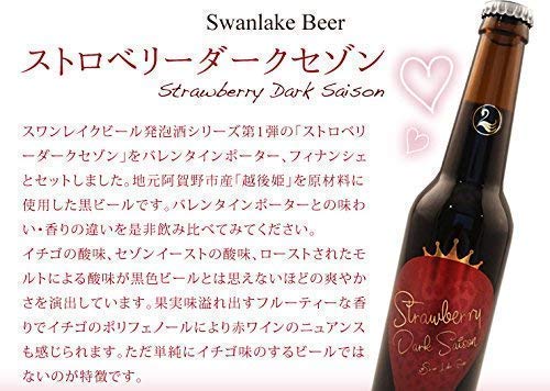 原材料・成分:フィナンシェ(チョコ):卵白、バター、アーモンドパウダー、小麦粉、準チョコレート(ココアパウダー、植物油脂、バターオイル、乳化剤<大豆を含む>、香料)乳化剤、膨張剤、香料 バレンタインポーター:麦芽・ポップ ストロベリーダークセゾン:麦芽・ホップ・イチゴ