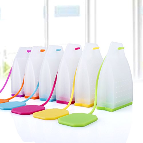Mother's Day Sale, Set of (6) Premium Silicone Reusable Tea Bag ? Candy Silicone Tea Infuser Strainer Set ? Genuine Premium Loose Leaf Infuser Set ? Great as Birthday Gifts---Six Colors