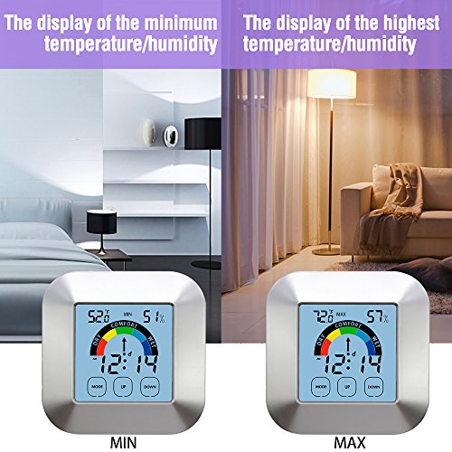 Product Description Equipped with professional grade sensors, SMARTECH hygro-thermometer provides the most accurate measurements,ideal for indoor humidity or temperature, allowing you to be aware if adjustments are necessary for your household. The indoor thermometer and humidity gauge is not just highly accurate but extremely user friendly with a backlight for those nighttime last minute checks on current readings before bed. That's not all, no longer will it be necessary to unmount the device off your wall or fridge to switch settings, simply use the touchscreen display. Furthermore, this temperature gauge provides an abundance of valuable information, such as displaying 24 hour/all-time high/low records and current trends for both humidity and temperature and humidity level icons that indicate if your home is too humid, too dry or just right! 0