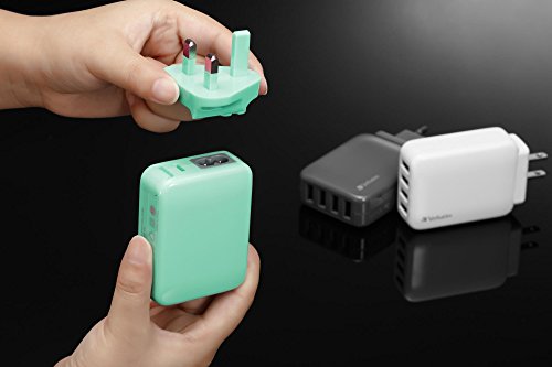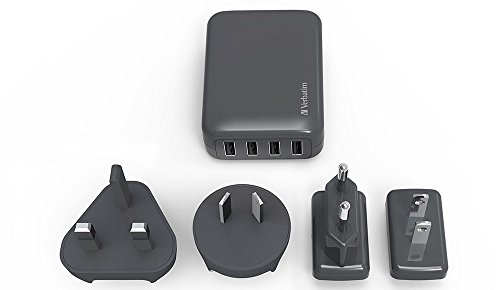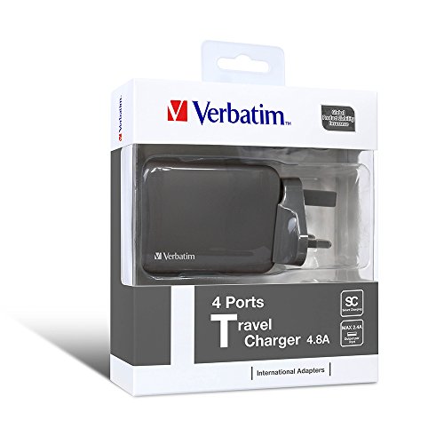 Verbatim 4 Ports European Travel Power Converter Adapter Combo. 1 Year Limited Warranty. EU/US/AU/UK International Universal Standard Plugs. With Smart Charging Technology. 100-240V/50-60Hz (Black)