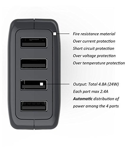 Supports up to 4.8A max total output with 2.4A max output each port.