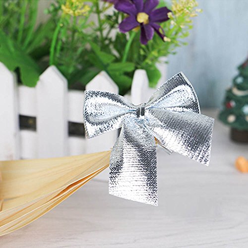 Christmas Ornaments Pretty Bow Tie Christmas Tree Ornaments Christmas Pendant Tree Decor 24pcs (Silver)
