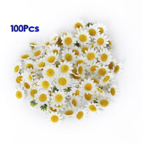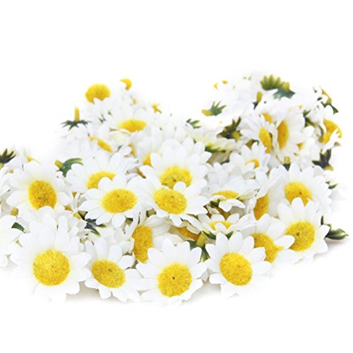 Supla 100Pcs Artificial Silk Gerbera Daisy Flower Heads 1.5 inch DIY Wreath Gift Box Scrapbooking Craft (without stem) (white)