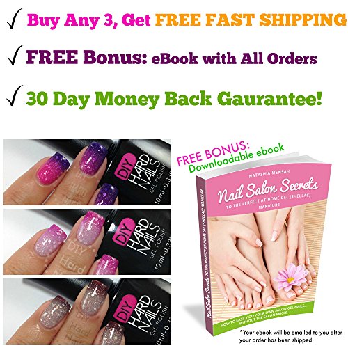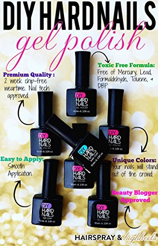 -. Binding : Misc. -. Brand : DIY Hard Nails -. Feature : BUY 3, Get FREE FAST SHIPPING From USA (not Asia): Reliable Shipping. All other orders include $3.99 flat USA shipping rate with high quality, protective packaging. International shipping also available. / PROFESSIONAL-GRADE GEL POLISH: 2 week NO CHIP wear with our Unique Toxic Free UV gel formula. Thick smooth consistency, easy to apply at home, cures (dries) beautifully with your LED or UV lamp. NO Formaldehyde, Mercury, Lead, DBP, Toluene. / FREE BONUS eBOOK: Easy step-by-step downloadable instructions & Pro-tips for at home gel application & removal included. Sent through email after order has been verified. / 30 DAY MONEY BACK GUARANTEE: Email us anytime for questions or assistance. We Love to help our customers! / *Nail Lamp Not Included* -. Label : DIY Hard Nails -. Manufacturer : DIY Hard Nails -. PackageQuantity : 1 -. ProductGroup : Beauty -. ProductTypeName : BEAUTY -. Publisher : DIY Hard Nails -. Studio : DIY Hard Nails -. Title : Best UV Soak Off Gel (Shellac) Nail Polish - Professional Grade - Requires UV or LED Nail Lamp - BONUS Downloadable at Home Gel Nail Guide Included