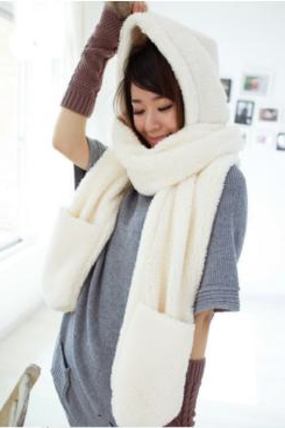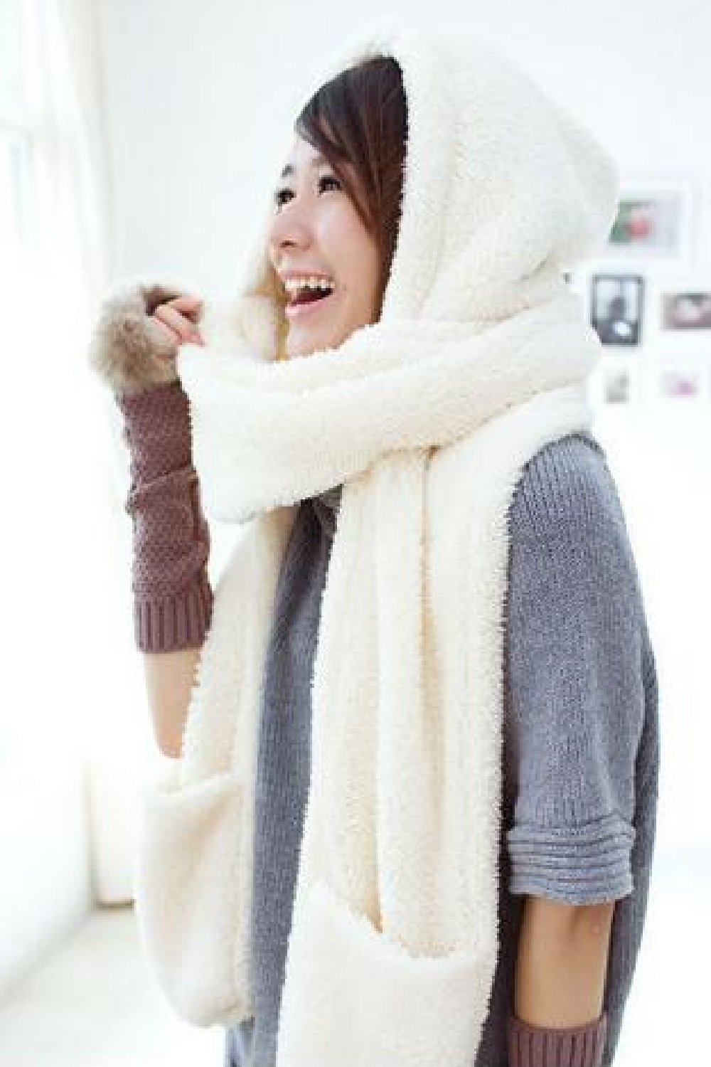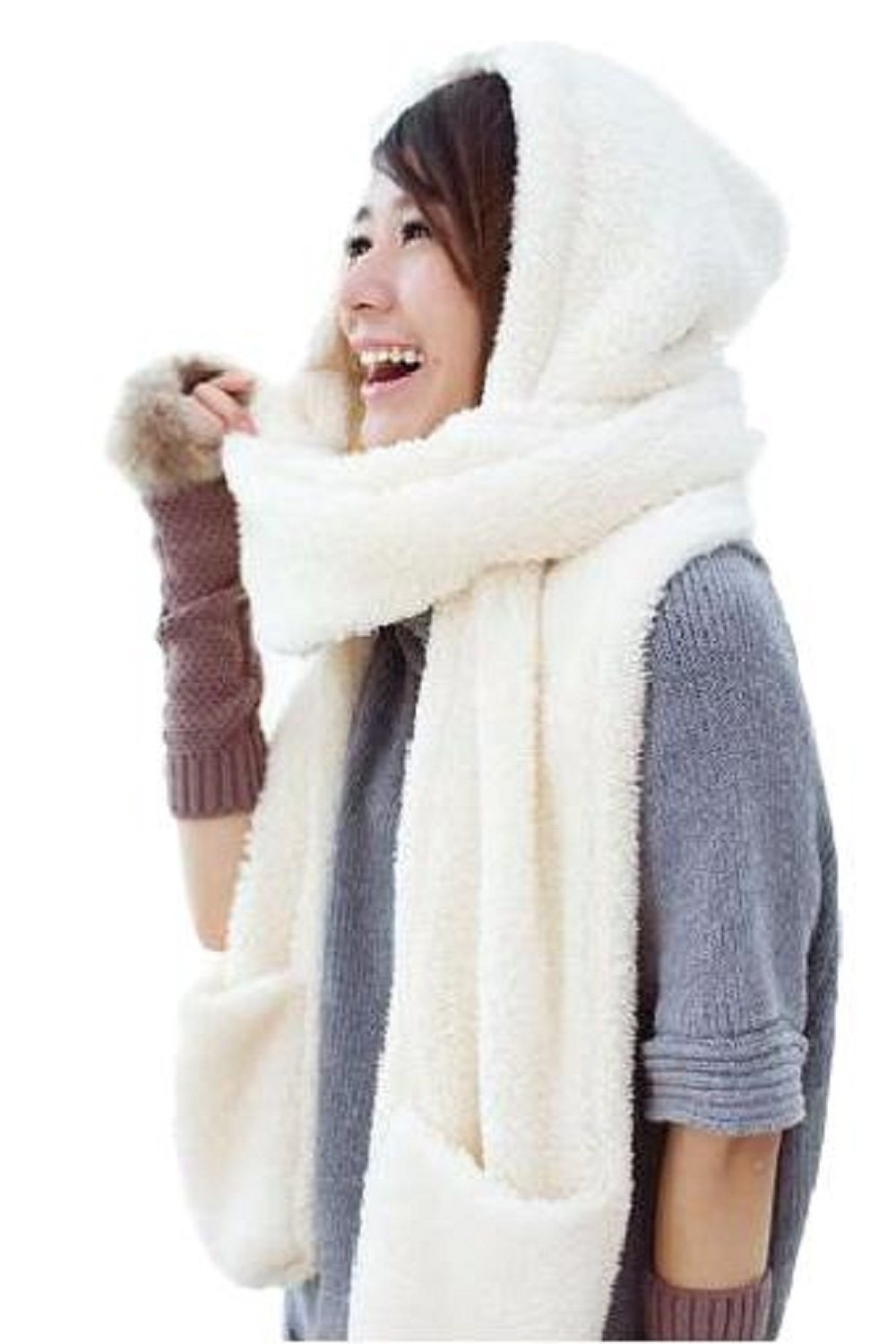Docked triangular hood and pocket type gloves, cute individualist scarf ♪