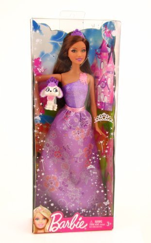 Full sized Barbie doll and pet, brunette dressed in purple.