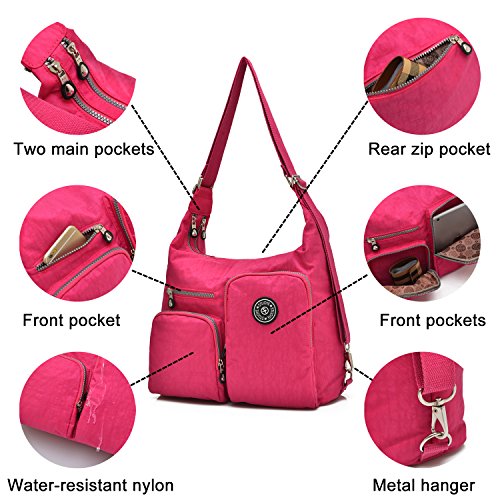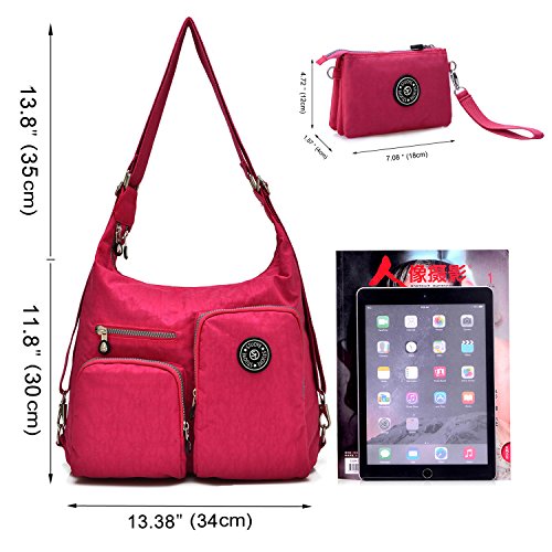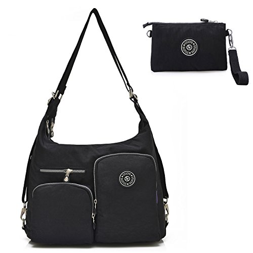 -. Feature : INCLUDING - A medium crossbody bag(backpack) and a purse bag.They can meet your all requirments. / MATERIAL - 100% high-quality water-resistant nylon with the properties of lightweight,smooth to the touch and easy to clean. / DIMENSION(L*W*H) - Shoulder bag is 13.38*4*11.8(34*4*30cm) inch,handbag is 7.3*1.6*4.7 inch.You can use it as a shoulder bag,crossbody bag or backpack and fit different people.They are perfect for day-to-day use and occasional travel/school/shopping as a daily bag and great gift for everyone.A must have for every trip and everyday. / MULTI POCKETS - Two main pockets with a interior zip pocket and two small bag,will fit your water bottle,umbrella,iPad and other personal belongings,three front pockets fit your cards,pens,keys and a back zipper pocket for your important belongings. / FASHION STYLE - Simple and casual design.It can be used as a backpack/crossbody bags/shoulder bag/messenger bag/tote bag/purse bags/handbags and the small bag can use as clutch bag/cell phone pouch/card bag and wristlet bag.