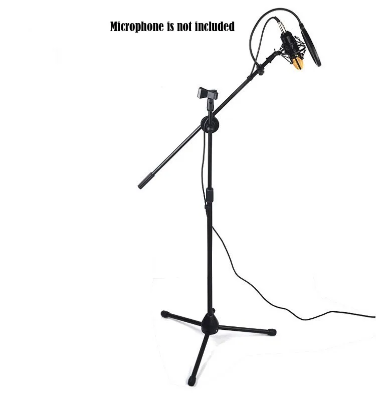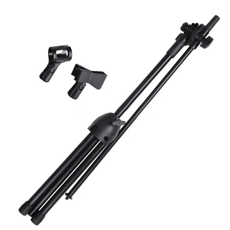 A sturdy tripod base and boom arm with telescopic adjustment.